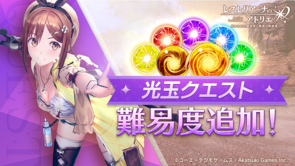 ○概 要: 素材クエストの「光玉クエスト」に新たな難易度[超獄級]を追加しました。ぜひ新しい難易度をクリアして光玉を獲得し、キャラクターの育成にお役立てください。