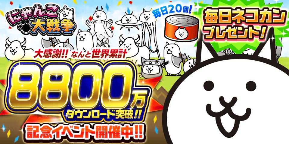 イベント開催期間中に「にゃんこ大戦争」アプリを起動すれば、毎日ネコカン20個プレゼント!