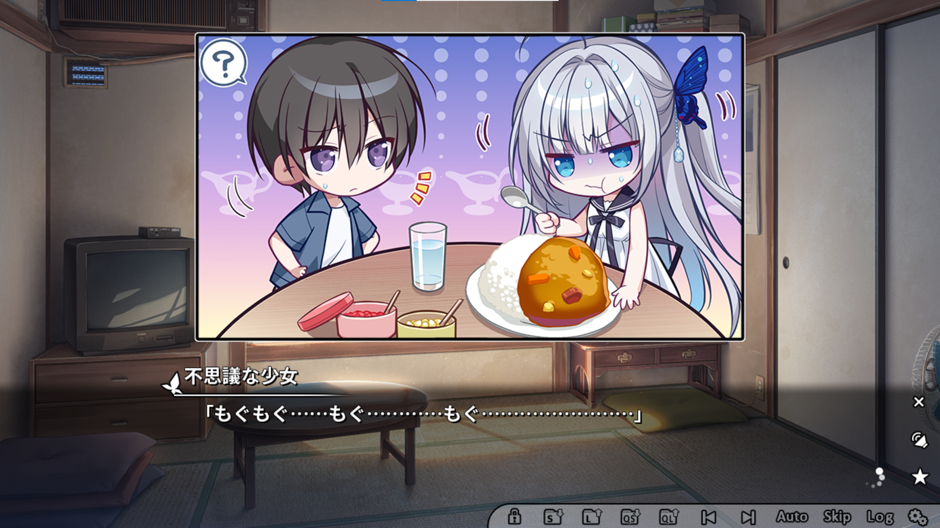 さらに、美しいだけでなくコミカルなシーンでは、ちびキャラの可愛いイラストが差し込まれるのもポイントのひとつ。本作では、物語の大筋がミステリーに寄っているため基本はシリアスな展開が続くのだが、キャラ同士の掛け合いがある日常パートではボケやツッコミが飛び交うシーンも多い。