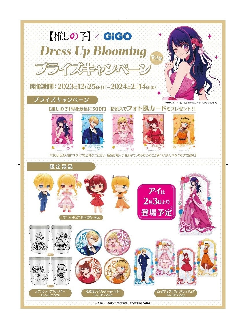 ブシロードクリエイティブ、対象のGiGOグループ店舗で『【推しの子】Dress Up Blooming プライズキャンペーン 第2弾』の期間限定イベントを12月25日より開催