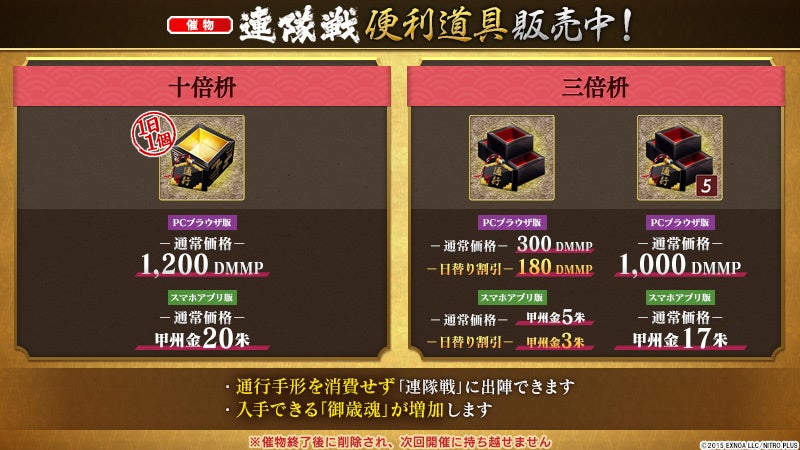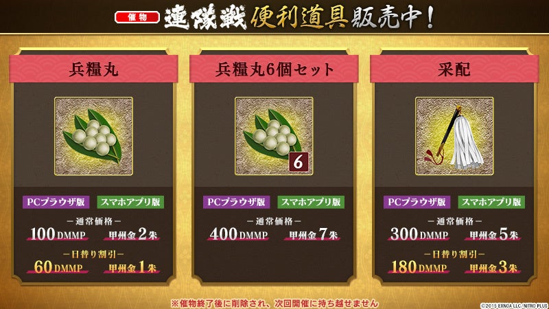 「連隊戦」の開催期間中、イベントをより有利に進められる専用便利道具を販売する。