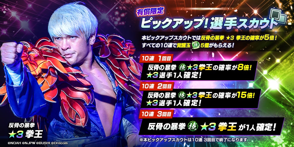 NOAHから、★3拳王が登場!NOAH限定ピックアップ選手スカウトを開催!