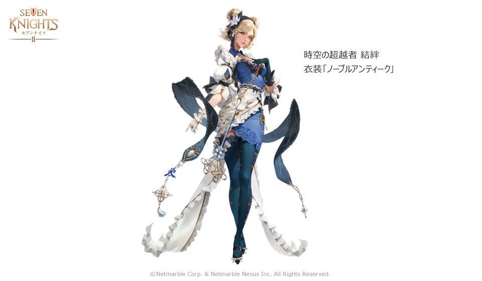 本アップデートでは、神話英雄「時空の超越者 結絆」に新しい衣装「ノーブルアンティーク」が登場。優雅さを感じさせる、流れるような美しさをもつ青と白のローブ。