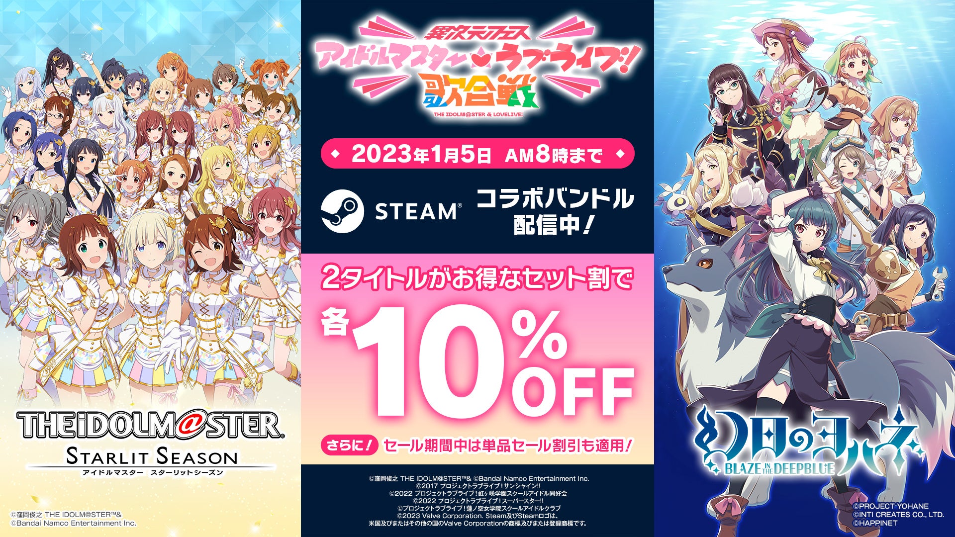 Steamウィンターセール期間はさらにお得!Steam『アイドルマスター スターリットシーズン + 幻日のヨハネ -BLAZE in the DEEPBLUE- バンドル』期間限定で配信中!セット割りで各10%OFF!