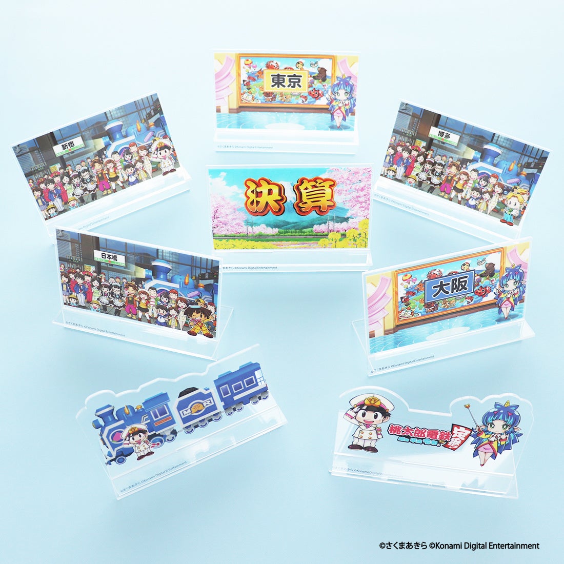ゲーム内でも人気の場面『決算』を中心に、桃太郎電鉄ならではのご当地柄もデザインしました。スマートフォンを縦にも横にも置くことができる幅が広いサイズのアクリルスタンドなので、動画を見たりゲームをプレイしながら桃太郎電鉄の世界観を味わえます。