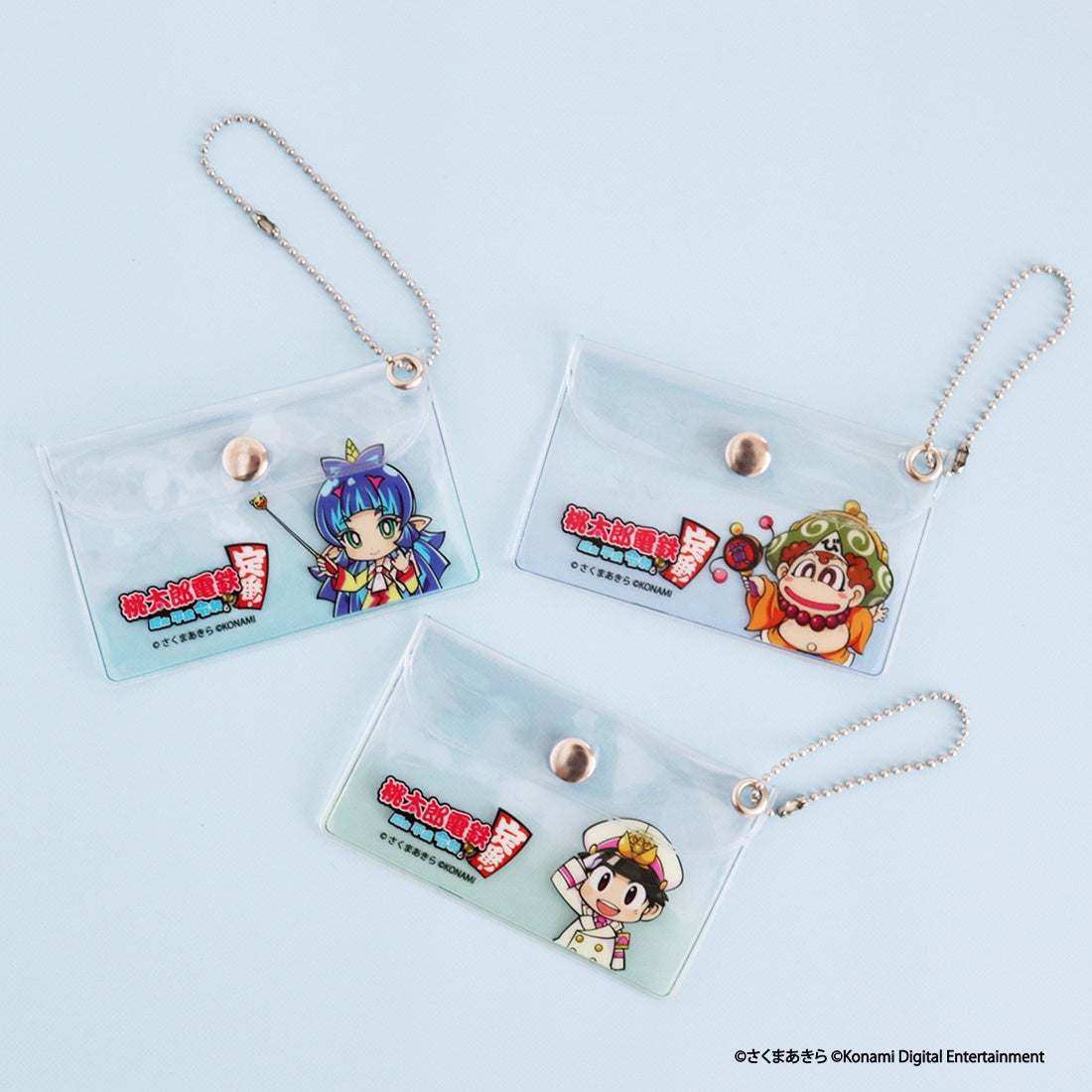 作中に登場するキャラクターの桃太郎、夜叉姫、貧乏神の3キャラクターをデザインしたクリアポーチです。ICカードや小銭など、外出時の小物を入れられるアイテムです。ボールチェーン付きなので、お手持ちのバッグなどにも付けてお使い頂けます。