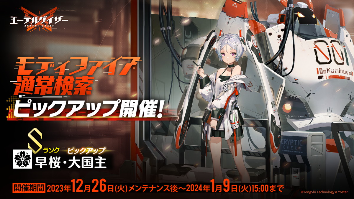Yostarは、『エーテルゲイザー』で、期間限定イベント「空白の夢」後半パートを12月26日メンテナンス後より開催している。また選んだSランクモディファイア1体の出現率がアップする「セレクト特殊検索」を開催する。