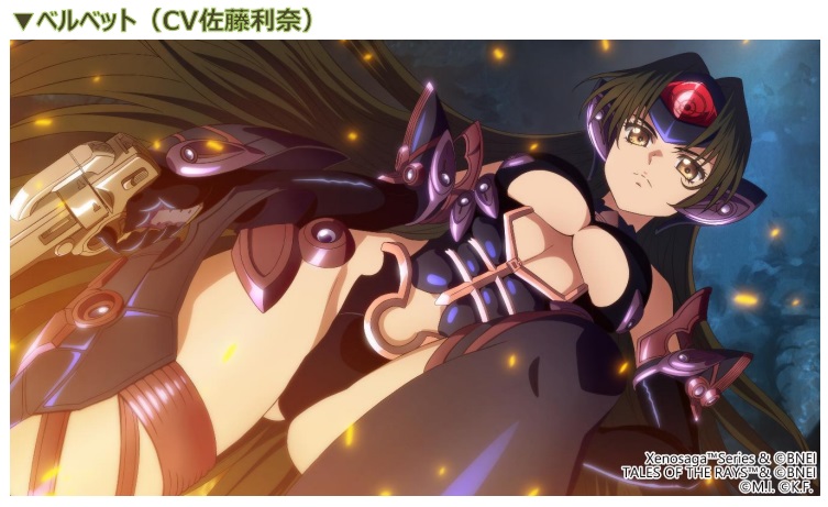 「ゼノサーガ」シリーズからKOS-MOS(CV:鈴木麻里子)が参戦し、「ザ レイズ」からは、カノンノ・イアハート(「テイルズ オブ レディアントマイソロジー2」CV:伊藤かな恵)、ベルベット(「テイルズ オブ ベルセリア」CV:佐藤利奈)、ライフィセット(「テイルズ オブ ベルセリア」CV:浅倉杏美)がコラボ限定衣装で登場する。