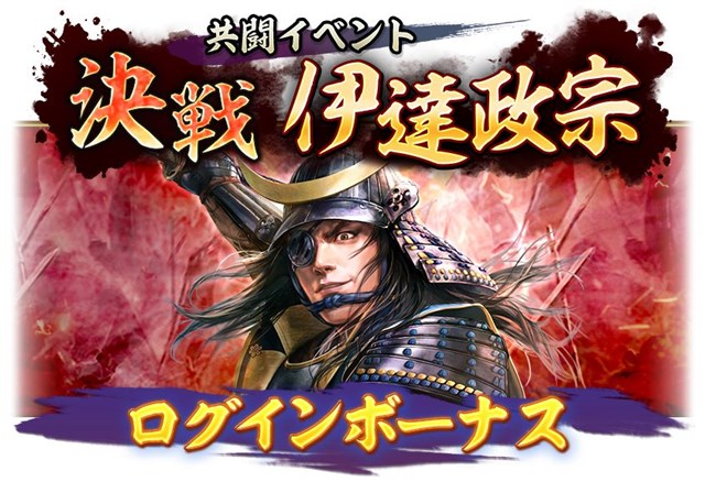 共闘イベントは、全国のプレイヤーと共に、強力な武将に立ち向かうイベント。今回は、「独眼竜」と称され、奥州に覇を唱えた伊達政宗が強敵としてプレイヤーの前に立ちはだかる。