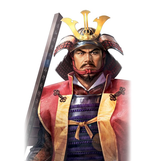 豊臣家で鉄砲兵種の武将。戦法「率先垂範」で敵 1 部隊に知略攻撃を行い、対象に兵法低下と防御低下を付与する。