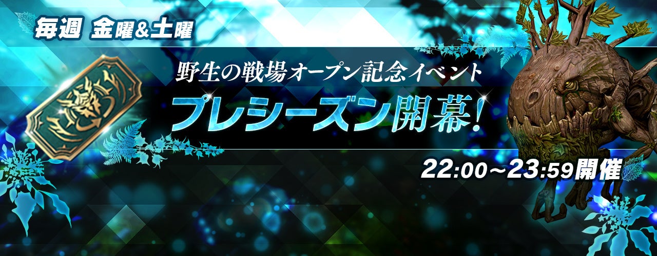 毎週金曜日と土曜日の22:00から23:59まで参加でき、開幕を記念した「野生の戦場参加応援イベント」も同時開催いたします。