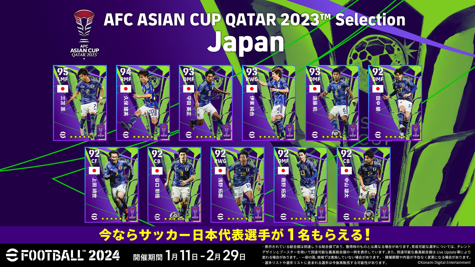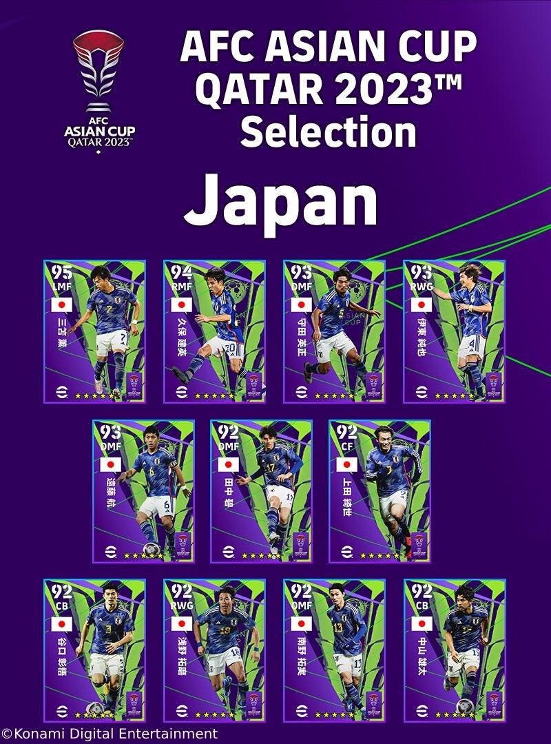 「AFC ASIAN CUP QATAR 2023(TM) Selection」のスペシャル選手リストの抽選契約権を各1枚無料配布。