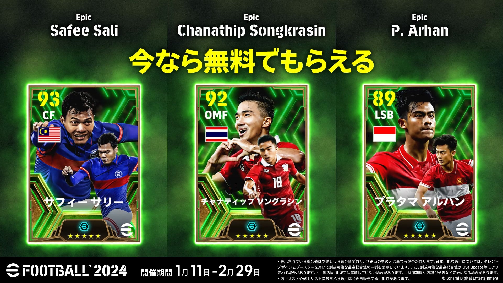 マレーシア、タイ、インドネシアを代表する3選手(Epic)をプレゼント。