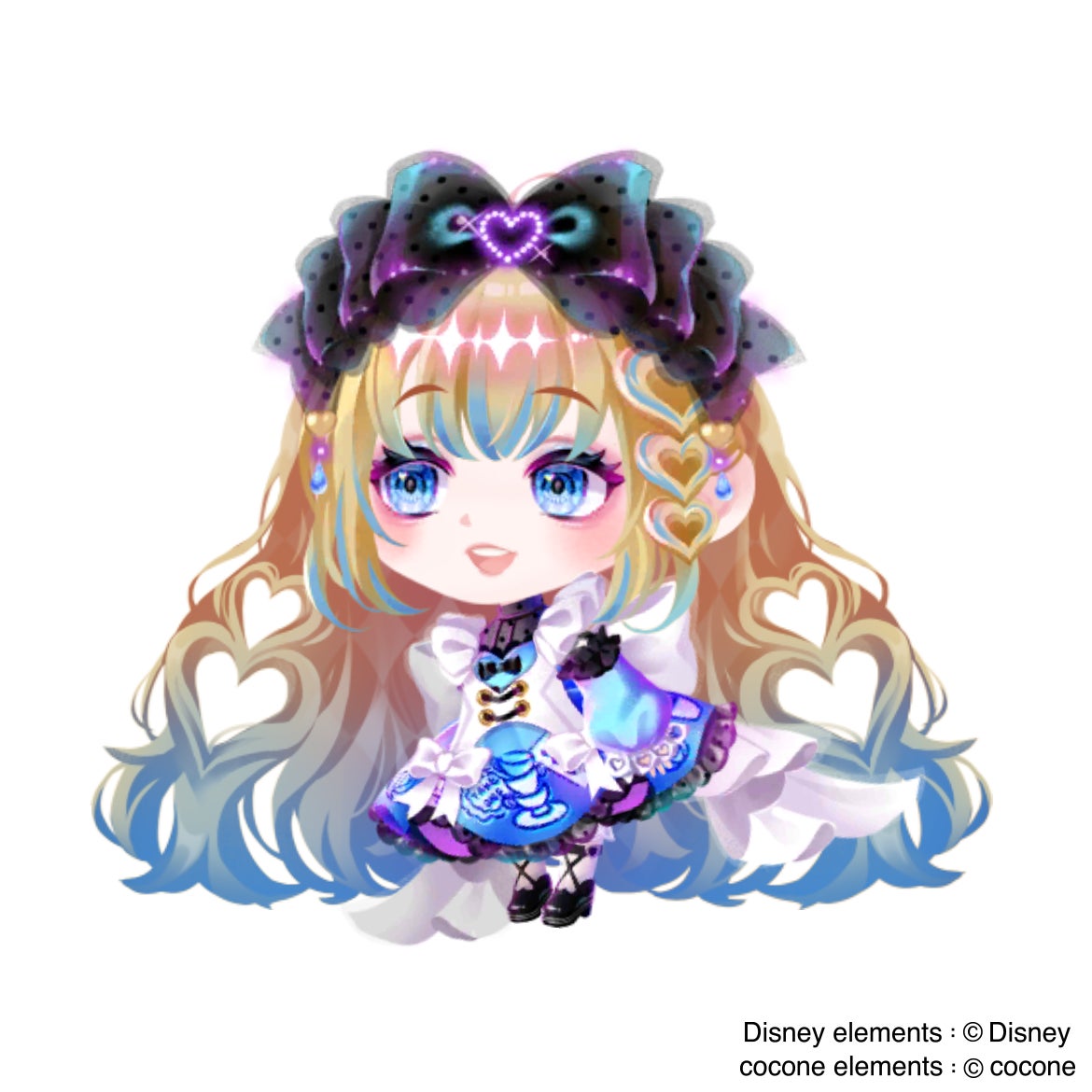 『ポケコロツイン』のイベントでは、ディズニー映画『ふしぎの国のアリス』のアリスとチェシャ猫をメインモチーフにしつつ、アミューズメントパーク風のシチュエーションで仕立てた企画となっています。色が変化するヘアスタイルやぴょこぴょこ動く猫耳アクセサリーなど、『ふしぎの国のアリス』の個性的な物語を表現した様々なファッションアイテムを展開。今までにない不思議な国の世界をお楽しみいただけます。