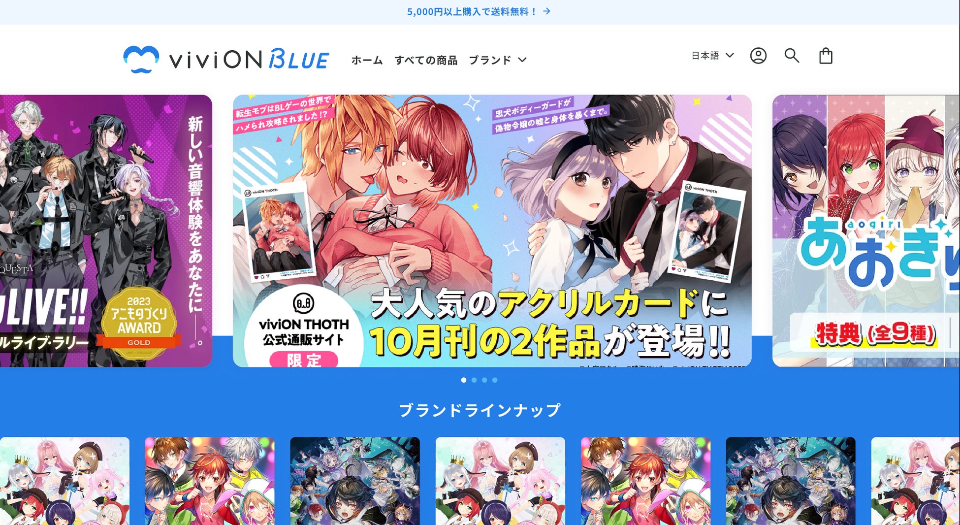 『viviON BLUE』は大手ショッピングサイトや店舗では手に入りづらい2次元コンテンツのコラボグッズ、独自のオリジナルグッズや自社IPのグッズを取り扱う総合バラエティーストアとなる。