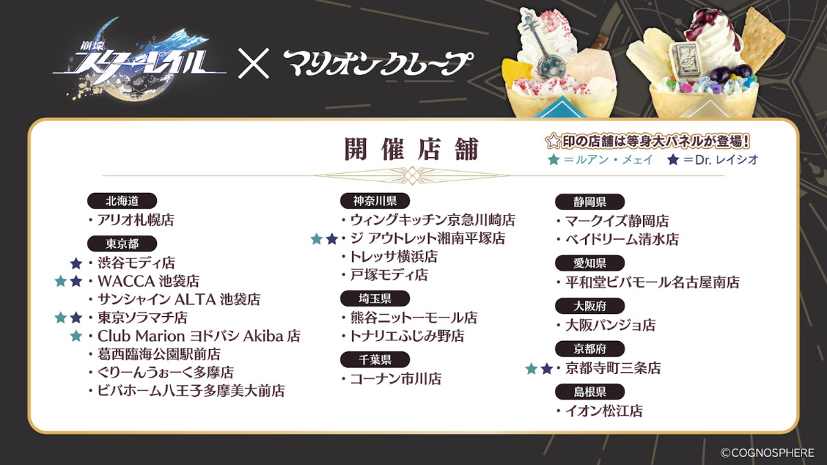 1月12日より1月28日の期間中に、全国対象22店舗でスターレイルマリオンクレープコラボが開催中。甘いスターレイルキャラクターをイメージしたクレープや「ルアン・メェイ」の創造物がプリントしたマシュマロを販売する。コラボクレープの購入でオリジナル特典もついてくる。