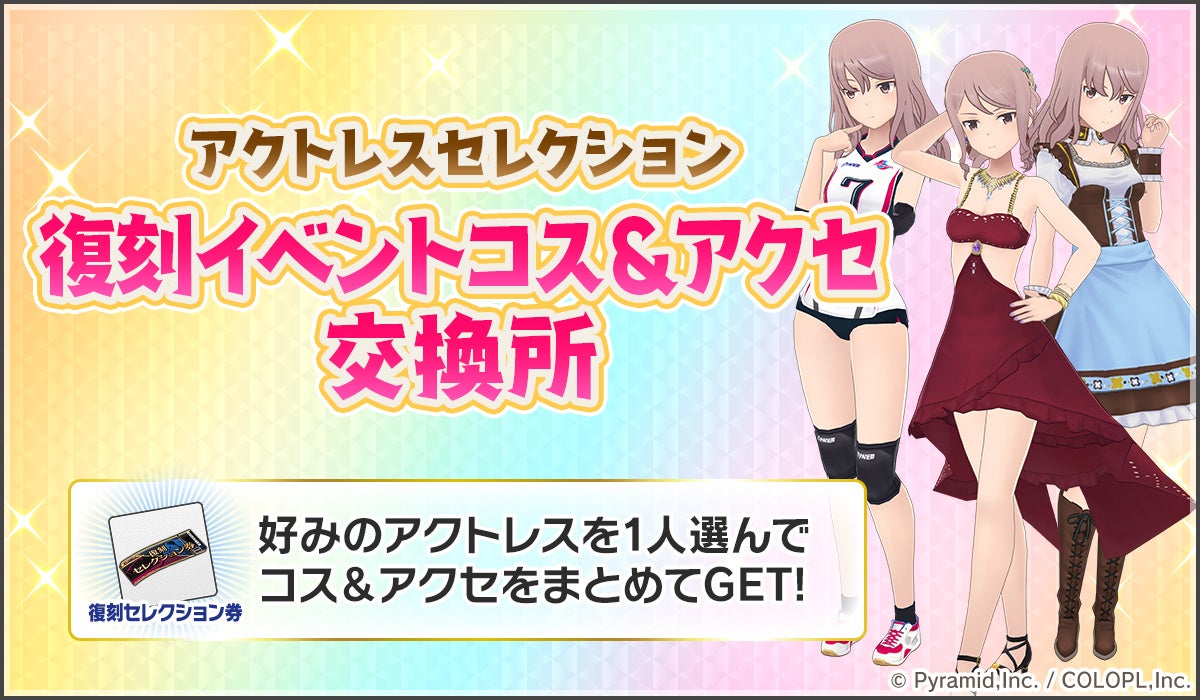 好みのアクトレスの復刻コスチュームやアクセサリーをまとめて入手することができる、特別な交換所が開催中。