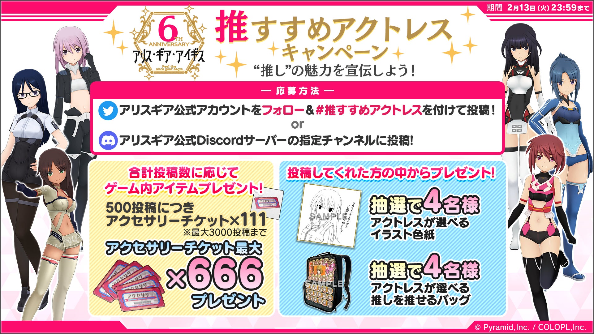 <特設サイトURL> https://colopl.co.jp/alicegearaegis/lp/6th_anniversary/campaign/