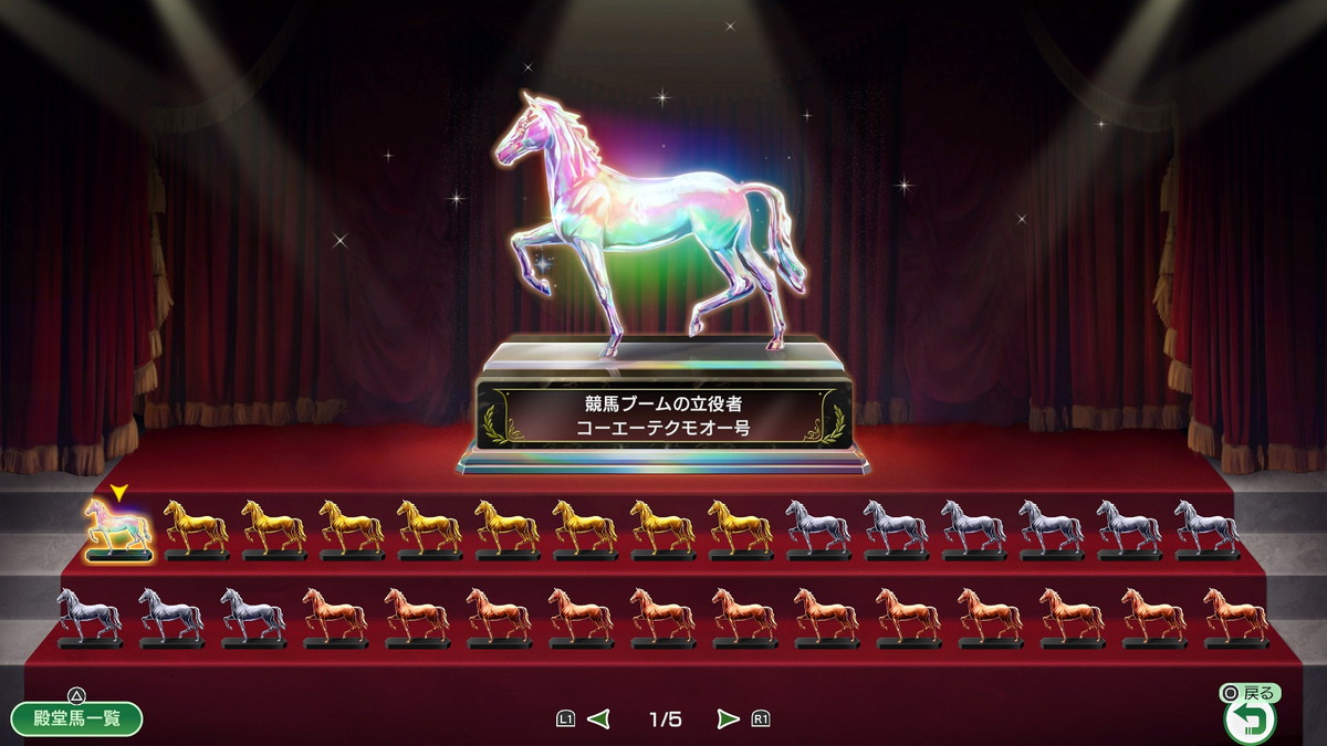 レジェンド特性を獲得し、日本の年度代表馬に選出した上で GI10勝以上の実績を挙げると、引退時に「顕彰馬」として殿堂入りする。顕彰馬は「競馬ブームに貢献し、人気・実績ともに素晴らしいものを残した競走馬」という究極の目標となり、その栄誉を永遠に称えるべく「虹色の殿堂馬像」が贈られる。