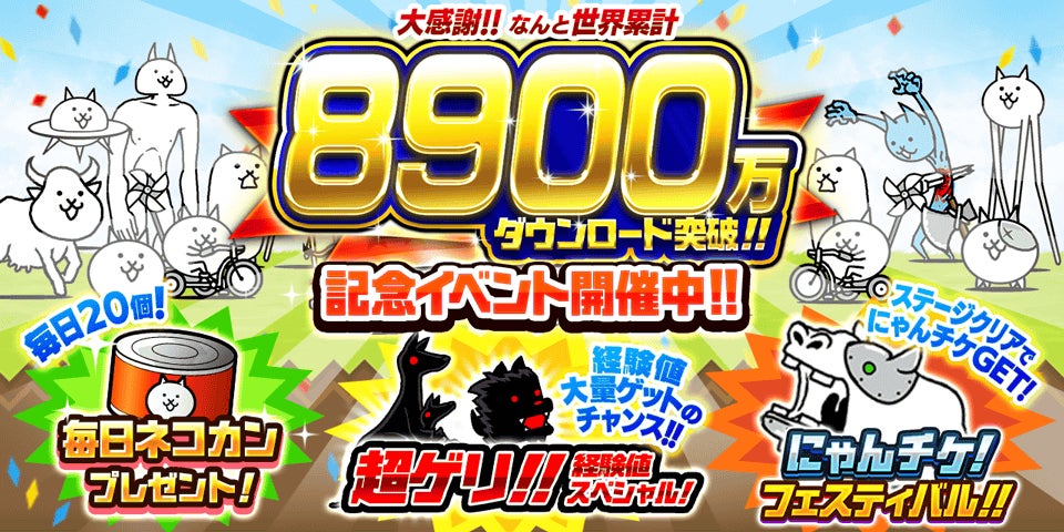 ポノスは「にゃんこ大戦争」で季節限定イベント「お祭りにゃんこ~中国春節編~」と、8900万ダウンロード突破を記念した期間限定イベントを1月29日より開始した。