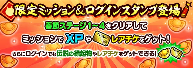 「お祭りにゃんこ~中国春節編~」イベントを対象としたスペシャルミッションが登場する。また、期間限定のログインスタンプキャンペーンも実施。