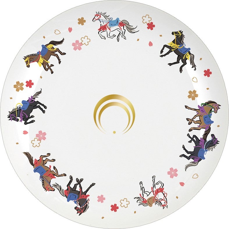 ※お皿の中心には2023年9月までに実装の107振りの刀剣男士紋が箔で表現された、全107種です。周囲の馬のデザインは統一です。