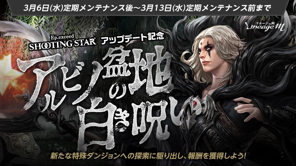 エヌ・シー・ジャパンは『リネージュM』で、3月6日(水)に、最新大型アップデート「Ep.Exceed SHOOTING STAR」を記念してソロ専用ダンジョン「アルビノ盆地」の実装、及び記念イベントの開催を発表した。
