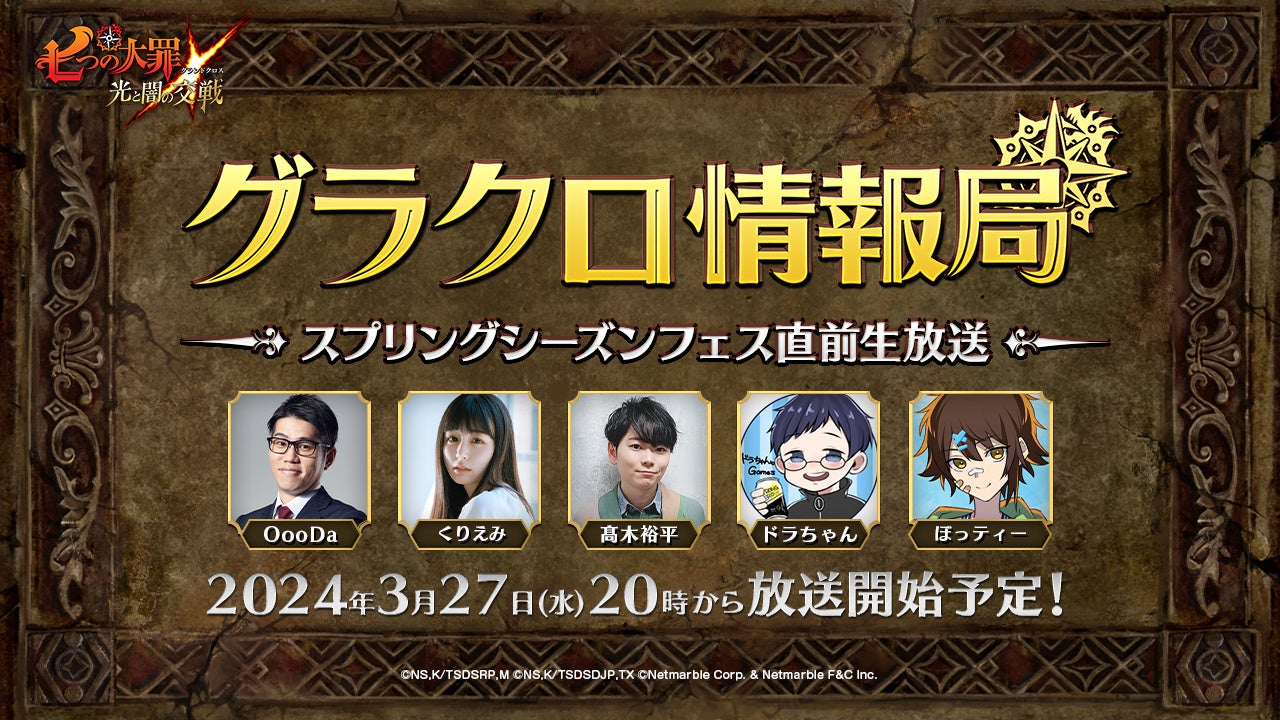 ネットマーブル、『グラクロ』公式WEB番組「第54回グラクロ情報局 ~スプリングフェス直前生放送~」を3月27日20時より実施