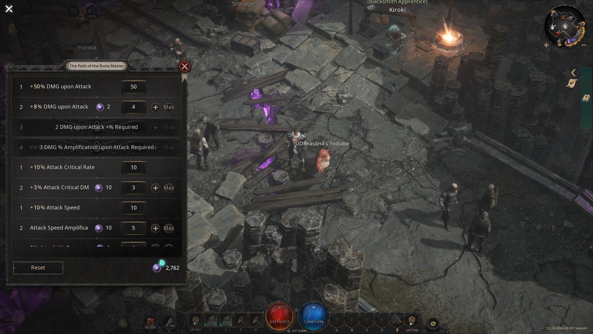 このシステムの核心は、キャラクターレベル100を達成した後にも一定条件(「ルーンマスターレベル」上昇)を達成するごとに追加で獲得できる「ルーンマスターポイント」を活用しキャラクターの基本ステータスを持続的に上昇させ能力値を強化できます。