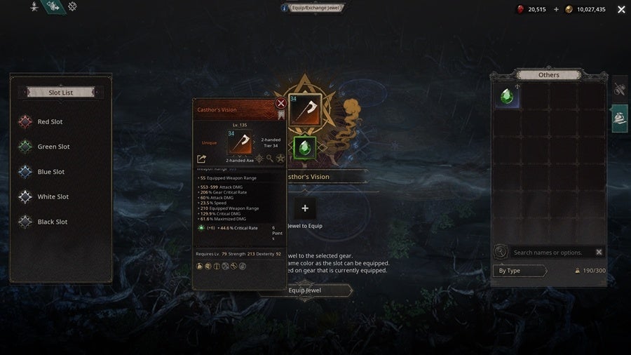 各々のスロットは、色で区分されていることが特徴です。ユーザーはスロットの色と獲得した宝石の色が一致するとこの宝石を装備スロットに装着することができます