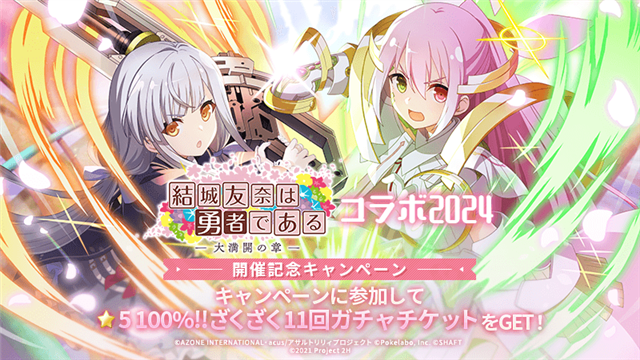 4月30日12:00より、『結城友奈は勇者である-大満開の章-』コラボ2024開催記念キャンペーンを開始した。期間中ログインやミッションを達成することで「★5 100%!!ざくざく11回ガチャチケット」などのアイテムが手に入る。