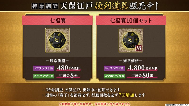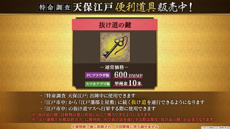 「特命調査 天保江戸」の開催期間中、イベントをより有利に進められる専用便利道具を販売する。