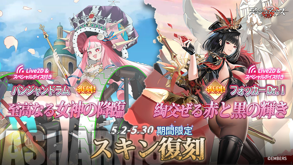 前回の人気投票イベント「奇跡の女神の騎行」では、栄冠に輝いたDOLLS達の「奇跡の女神」スキンが実装!