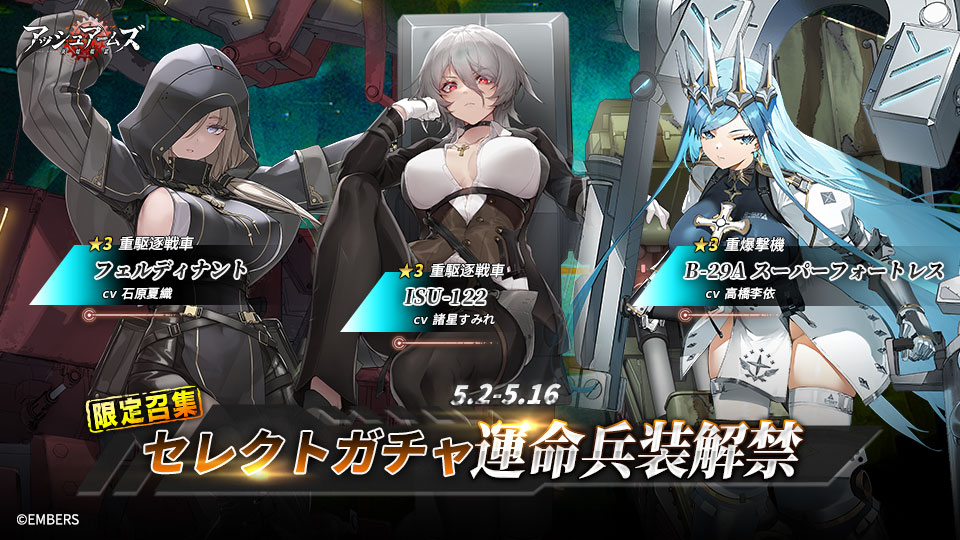※★3 重駆逐戦車「フェルディナント」、★3 重駆逐戦車「ISU-122」、★3 重爆撃機「B-29A スーパーフォートレス」は限定DOLLSのため、「栄誉の輝きを永遠に」召集が終了後、しばらく入手できなくなります。