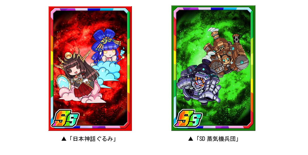 ダンジョンのボスモンスターを倒すと、まれに新たな限定子分カード「日本神話ぐるみ」「SD蒸気機兵団」が手に入る。限定子分カードは複数枚集めると進化ができ、子分スキルの効果が強力になる。
