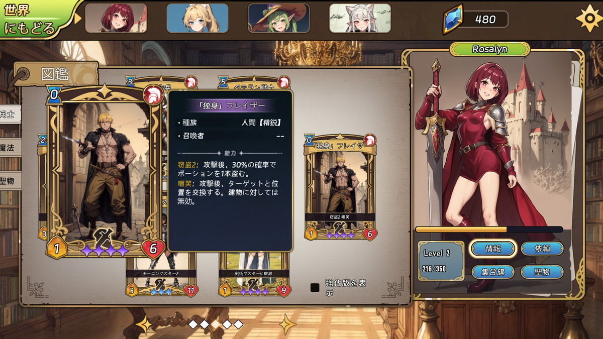 ゲームには独自のデッキ構築システムがあり、各美少女領主が独自の部隊と魔法を持っている。冒険中に彼女たちの力を強化するために、適した部隊を選んで力を合わせることが重要。より遠くまで冒険したい場合は、王宮で強力な冒険者を雇うことで戦力を補強できる。