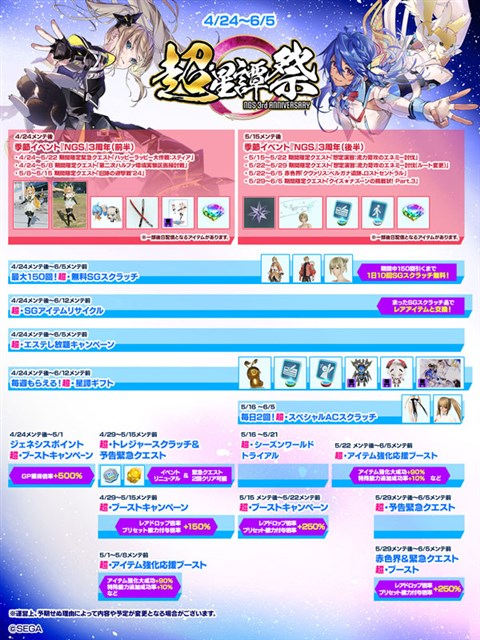 セガは、『PSO2 ニュージェネシス ver.2』(以下、NGS ver.2)において、2024年6月のサービス開始3周年を記念したキャンペーン「超・星譚祭 第2弾」を5月15日より開催している。