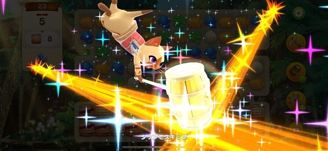 また、中々クエストがクリアできないという時はタップしたピースを消せる「ボーンネコピック」やタップしたマスを中心に十字に消せる「大タルネコハンマー」、タップした2つのピースを入れ替える「にゃんにゃんぼう」といったお助けアイテムを使うのもアリ。ただし、これらの武器は所持している分しか使えないほか、購入にはジェムが必要になるという点には注意。