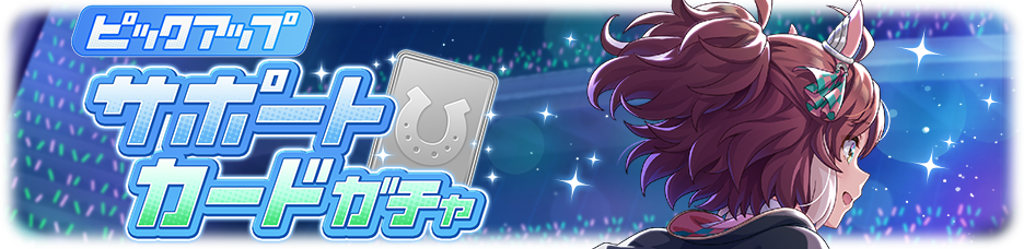 それぞれ新たな育成ウマ娘とサポートカードが登場。ピックアップ期間中に対象の★3育成ウマ娘を獲得すると、その育成ウマ娘の専用ピースをおまけとして通常より多く獲得できる。