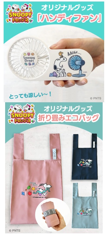 ハンディファンと折り畳みエコバッグは、スヌーピードロップスオリジナルグッズです♪
