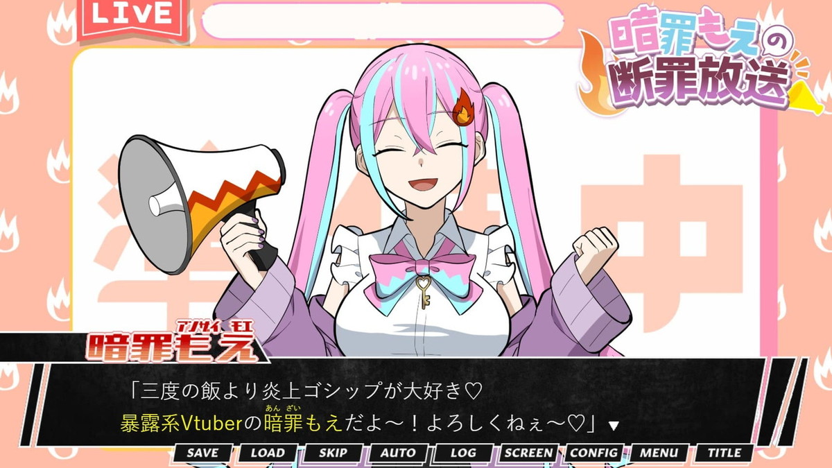 しかし、いつまで経ってもDMの送り主であるはずのプロデューサーは現れず、代わりに「暴露系VTuber」を名乗る美少女アバターがモニターに映し出される。その少女は告げた。「ここに集められた人は全員、世間にバレたらクリエイター人生が即終了するような【炎上スキャンダル】を持っている」と……。