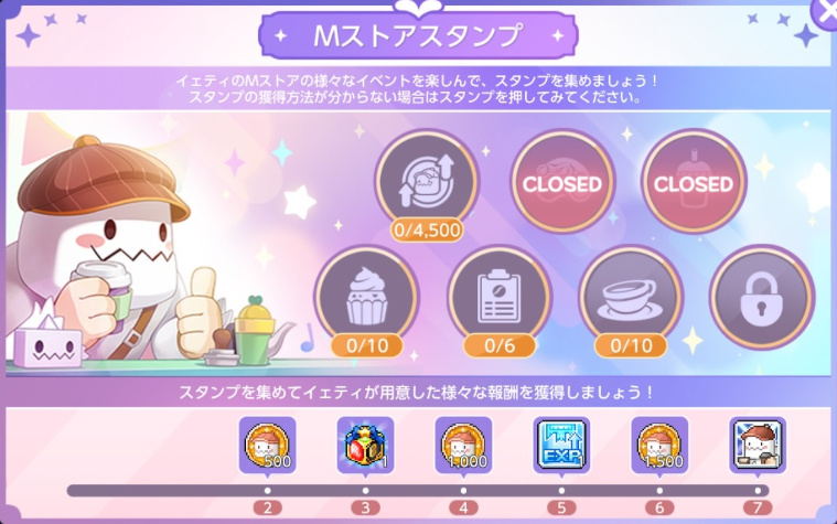 「イェティのMストア」の様々なイベントを楽しみながら、ミッションをクリアし、スタンプを集めよう。集めたスタンプの数に応じて、Mストアコインやイベント限定ライディングなどの報酬をプレゼント。
