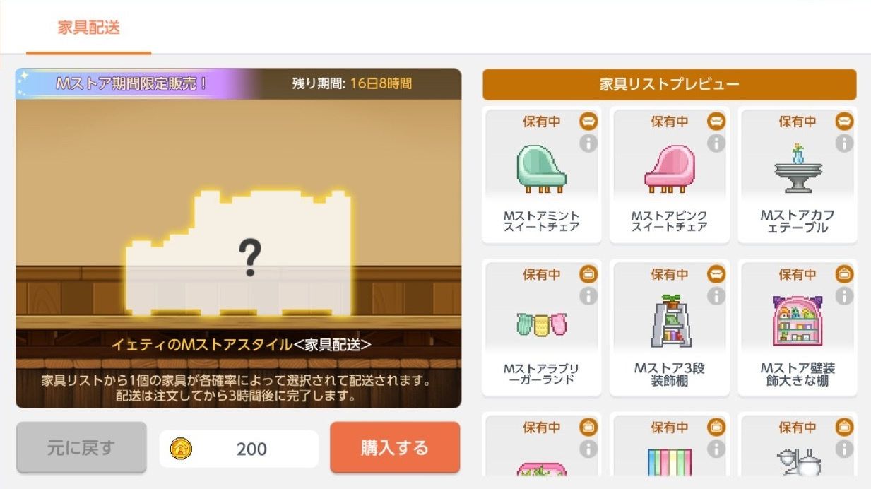 ハウジングコンテンツ「マイホーム」に、開催中のイベント「イェティのMストア」テーマが期間限定で登場!期間中にマイホームに入場するだけで、外見デザイン「イェティのMストア」が無料で購入できる。また、ランダム配送にも期間限定の「イェティのMストアスタイル」が追加されるほか、イェティのMストアスタイル家具をすべて集めると、業績達成報酬の家具ボックスもプレゼント。