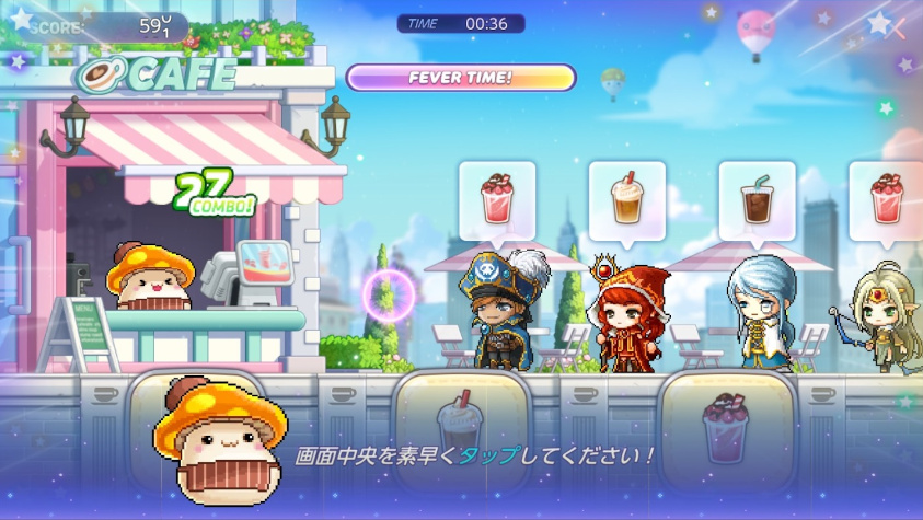 次々にやってくるお客さんのテイクアウト注文に対応し、正しいドリンクを提供しよう。正しい注文を重ねることでコンボが追加され、より高いスコアが獲得できる。たくさんの注文を処置してFEVER TIMEに突入したら、スコアを稼ぐチャンス!画面を素早くタップすると、注文内容に関係なく正しいドリンクを出すことができる。ハイスコアを叩き出して、たくさんのMストアコインを獲得しよう。