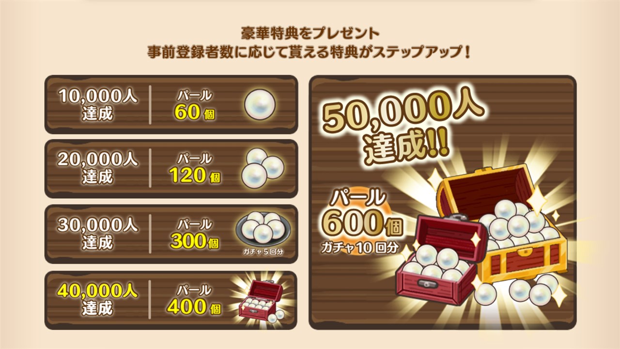 5万人達成:パール600個(ガチャ10回分)