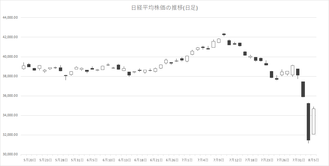 8月6日の東京株式市場は大幅反発。日経平均株価は、前日比3217円04銭高の3万4675円46銭と過去最大の上昇幅となった。前日公表された米国の景気指標が市場予想よりも良好だったことや、大幅な下落で自律反発狙いの買いや買い戻しが入ったようだ。為替が145円前後で安定すれば業績への影響は軽微でポジティブに働く可能性があるとの声もあった。