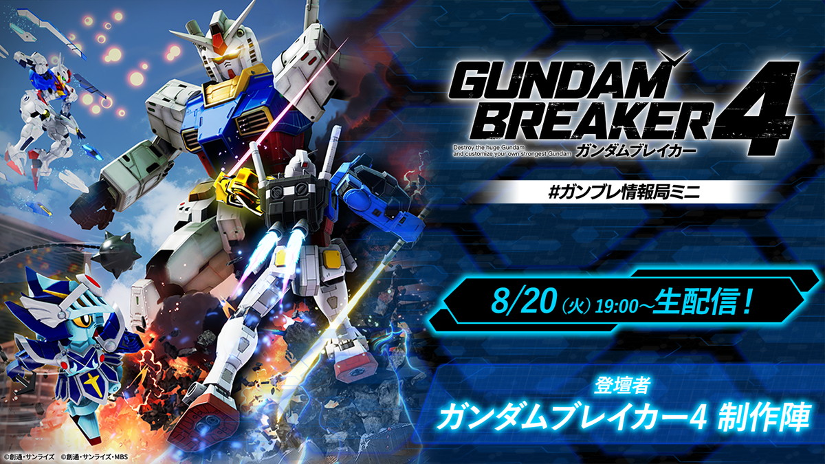 8月20日19時より、「ガンダムブレイカー4 #ガンブレ情報局ミニ Vol.4」を放送する。『ガンダムブレイカー4』制作陣より、最新情報をお届けする。