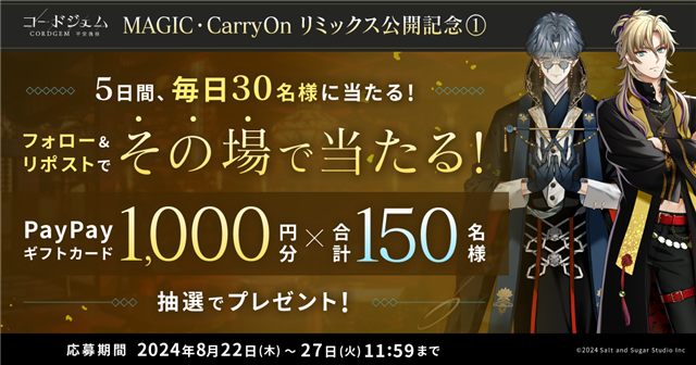 「MAGIC」「Carry On」リミックスVer.の公開を記念して、X(旧Twitter)でPayPayギフトカードが当たるプレゼントキャンペーンを開催している。