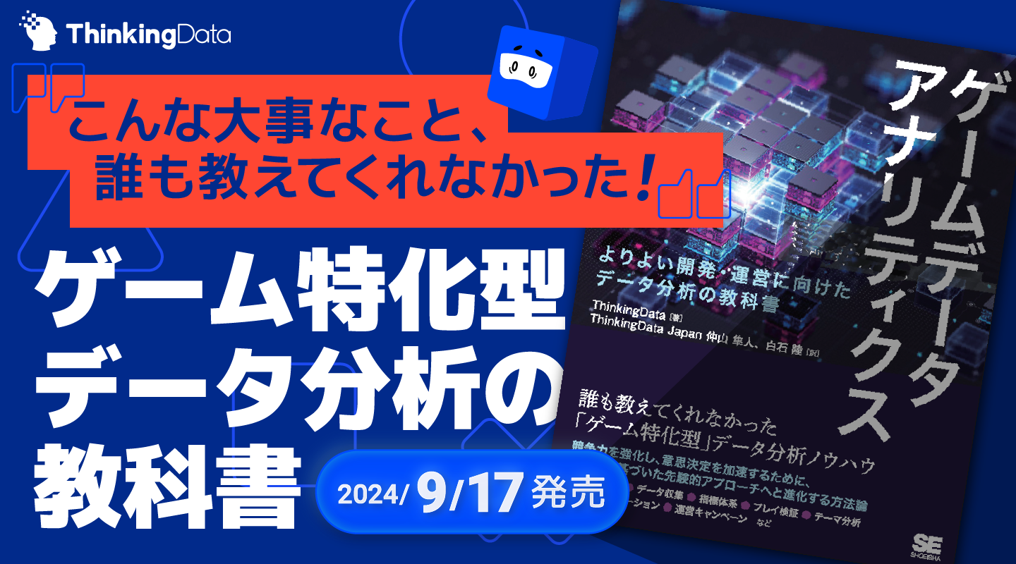 なお、シンキングデータでは9月17日発売のThinkingData Japan初の著書『ゲームデータアナリティクス ~より良い開発・運営に向けたデータ分析の教科書~』も刊行された。