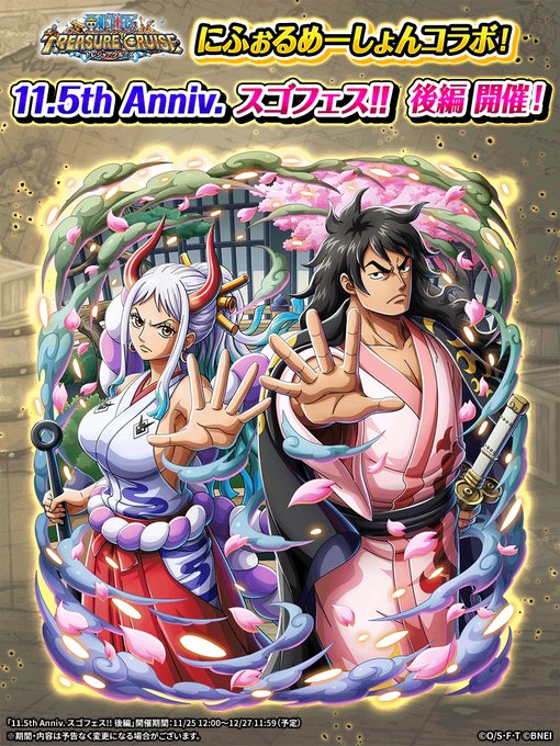 『トレクル』はゲーム内で「激突!激熱!超激戦!VS超スゴフェス エルバフの戦い」を開催している。今回、ボイス付きの超スゴい「シャンクスVSキッド」「ドリー&ブロギー」や、スゴいヤツの「フガー」「ゲロティニー」「プルル」が新登場している。